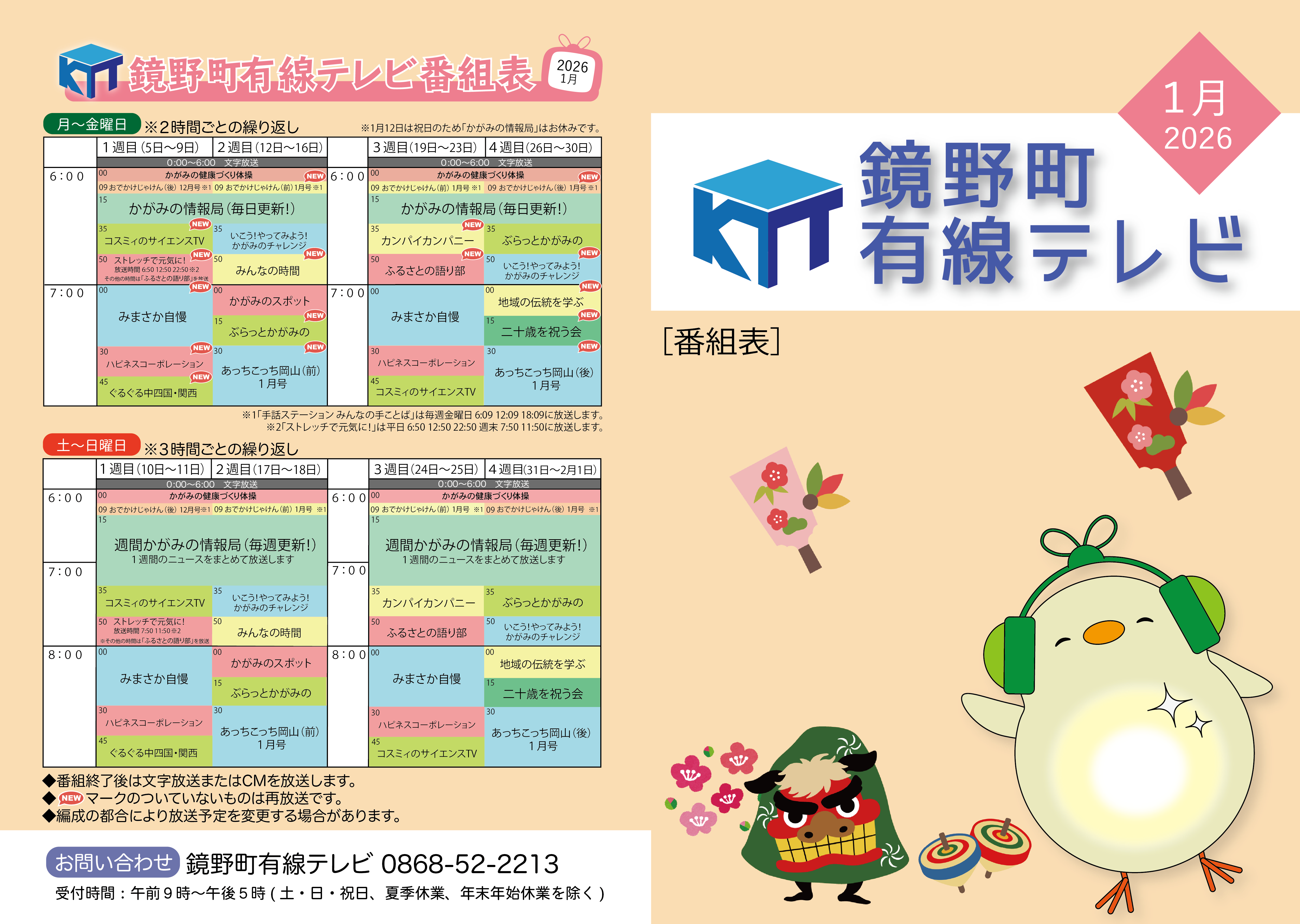 ※ 編成の都合により放送予定を変更する場合があります。最新の番組情報は、つぎのようにご確認ください。1.テレビのリモコンで12chを選局2.「番組表」ボタン