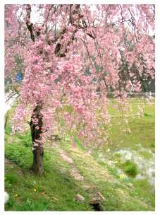 国道沿いのしだれざくら。