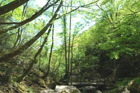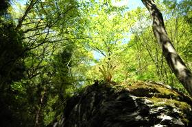 大きな岩の脇をぬけ 滝はもうすぐです |