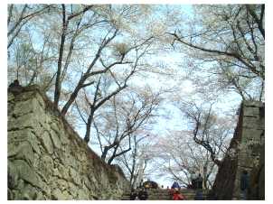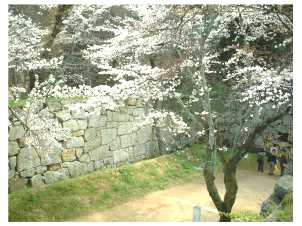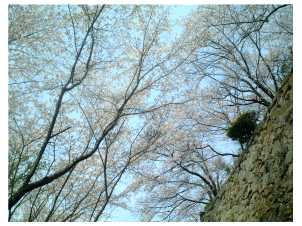 城壁にさくらが映えます。