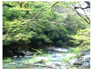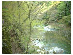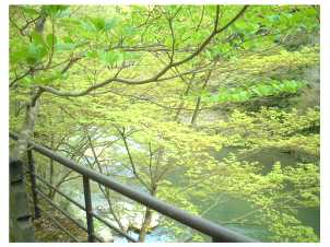 若葉でいっぱいの奥津温泉で自然を満喫してください。