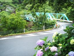 | お車は 奥津温泉から来られて 青い大釣橋の手前に3.4台ほど停められます |