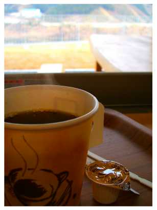 湖畔を望む 窓際でホットコーヒーをいただきました