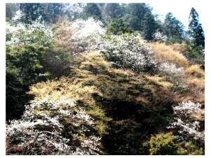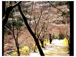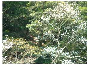 奥津渓では さくらとこぶしが春の訪れを告げてくれます