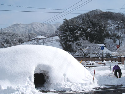 花美人の里の駐車場には(下の写真↓) 巨大な雪見大福 いや かまくらがお目見えしています